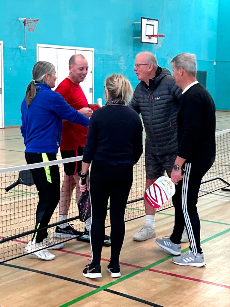 Colin and Sue managed to keep their handicap advantage for the early part of the match but then John and Jackie went on a run of points to take the score from 4-12 to 12-12 and it looked like they had the momentum to go on to victory. However, a tantalising net cord gave their serve away and Colin and Sue went on to secure the points required to gain a 15-13 victory