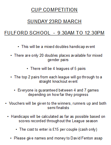 Mixed Pairs Handicap Cup Competition – 23rd March