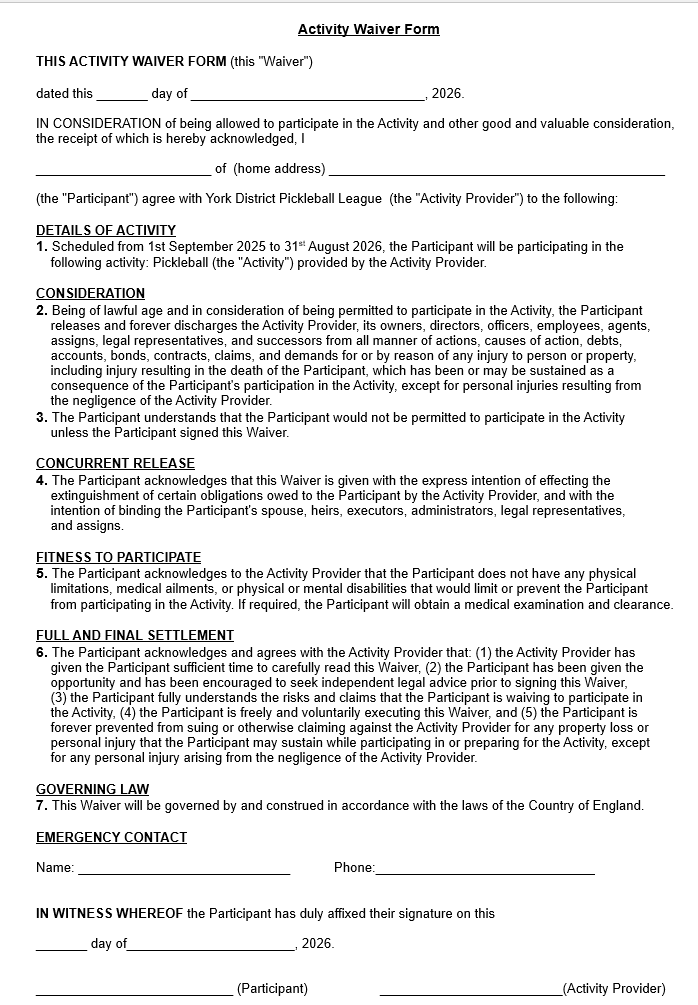 York District Pickleball League